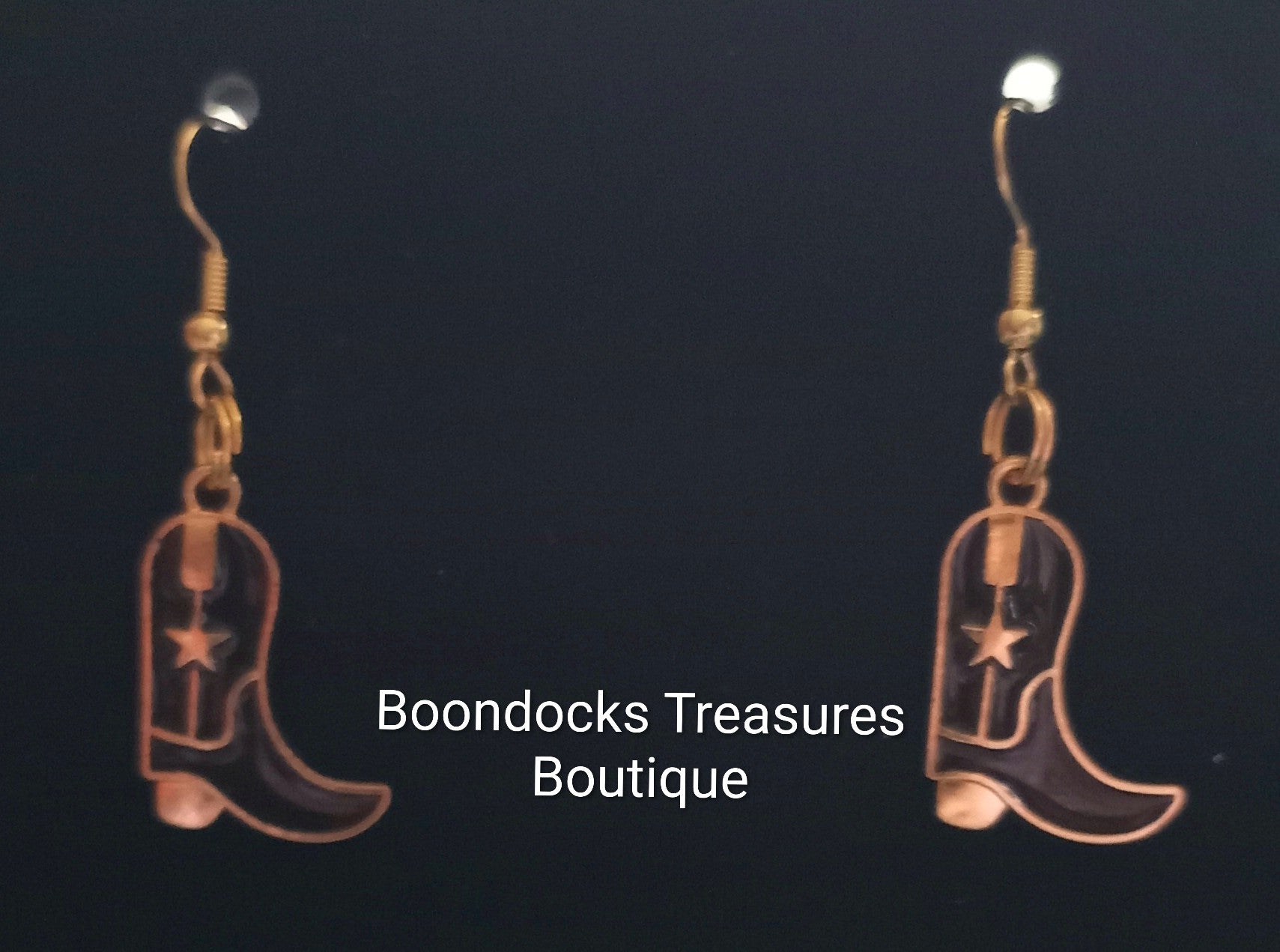 Black and Gold Cowgirl Boots with Star detail Handmade Earrings