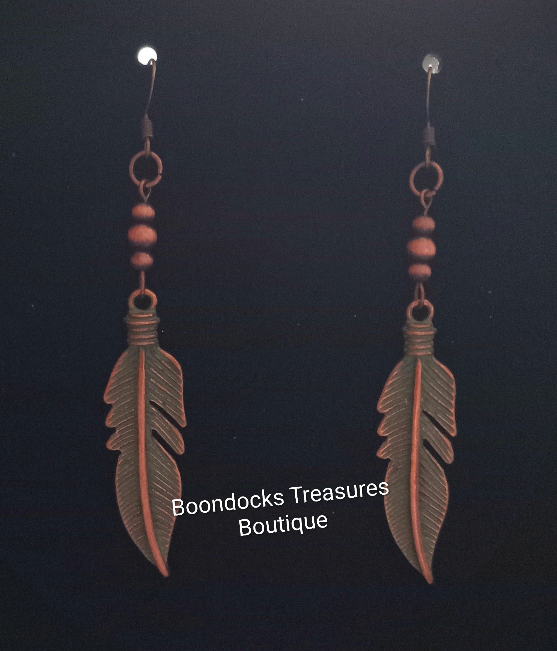 Copper/ Tarnished Copper Look Feathers Handmade Earrings
