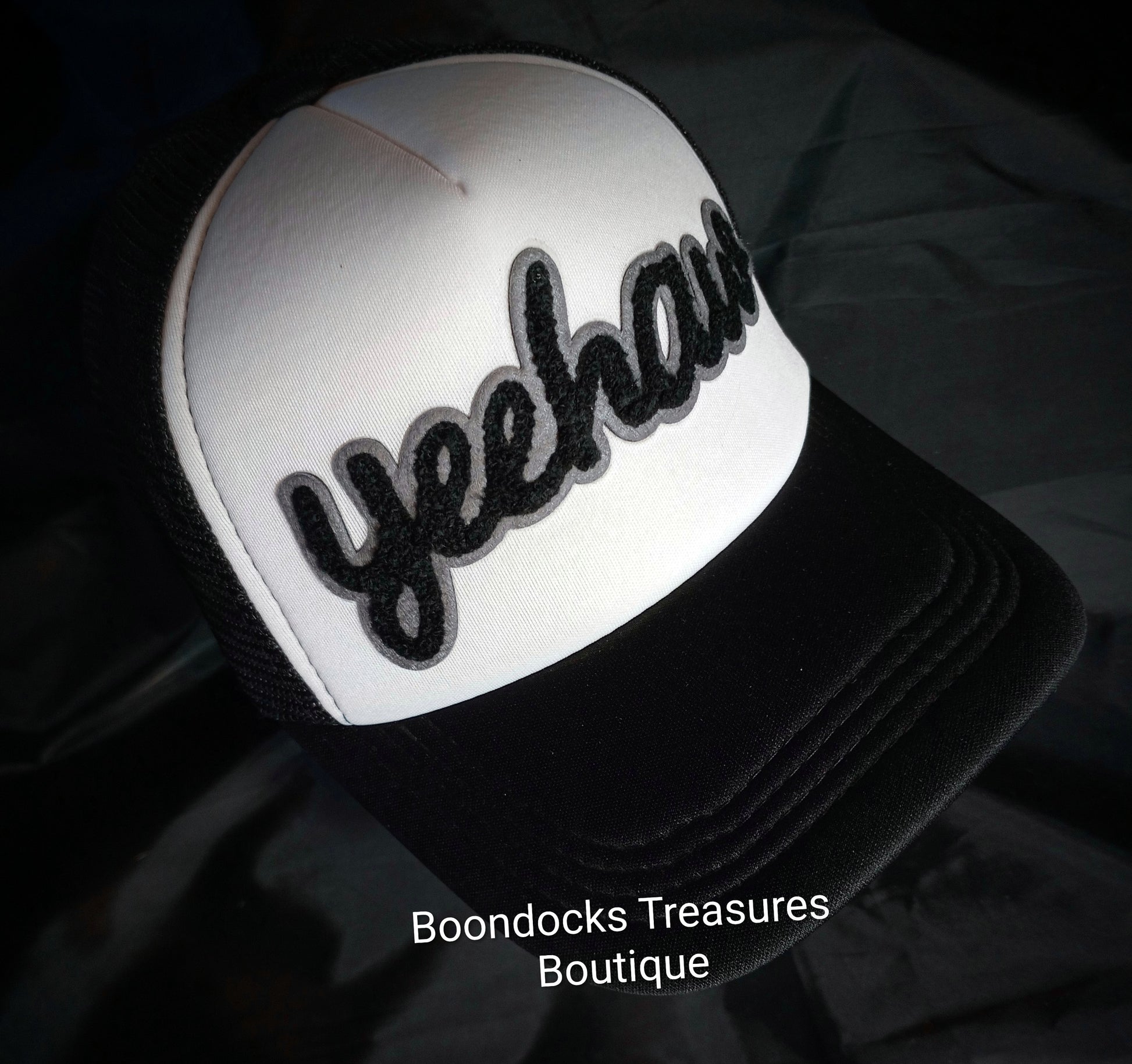 "Chenille Yeehaw" Patch embellished in- house on Black 🖤 Trucker Hat