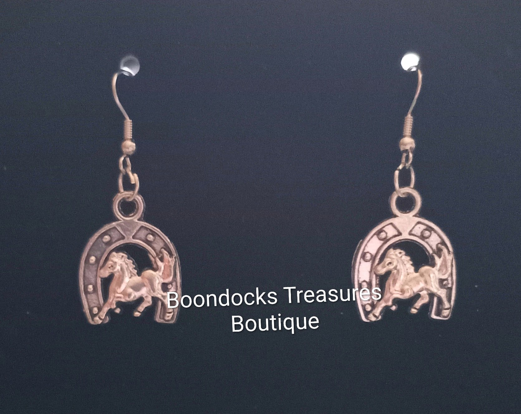 Silver Running Horse with Lucky Horseshoe Handmade Earrings