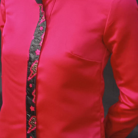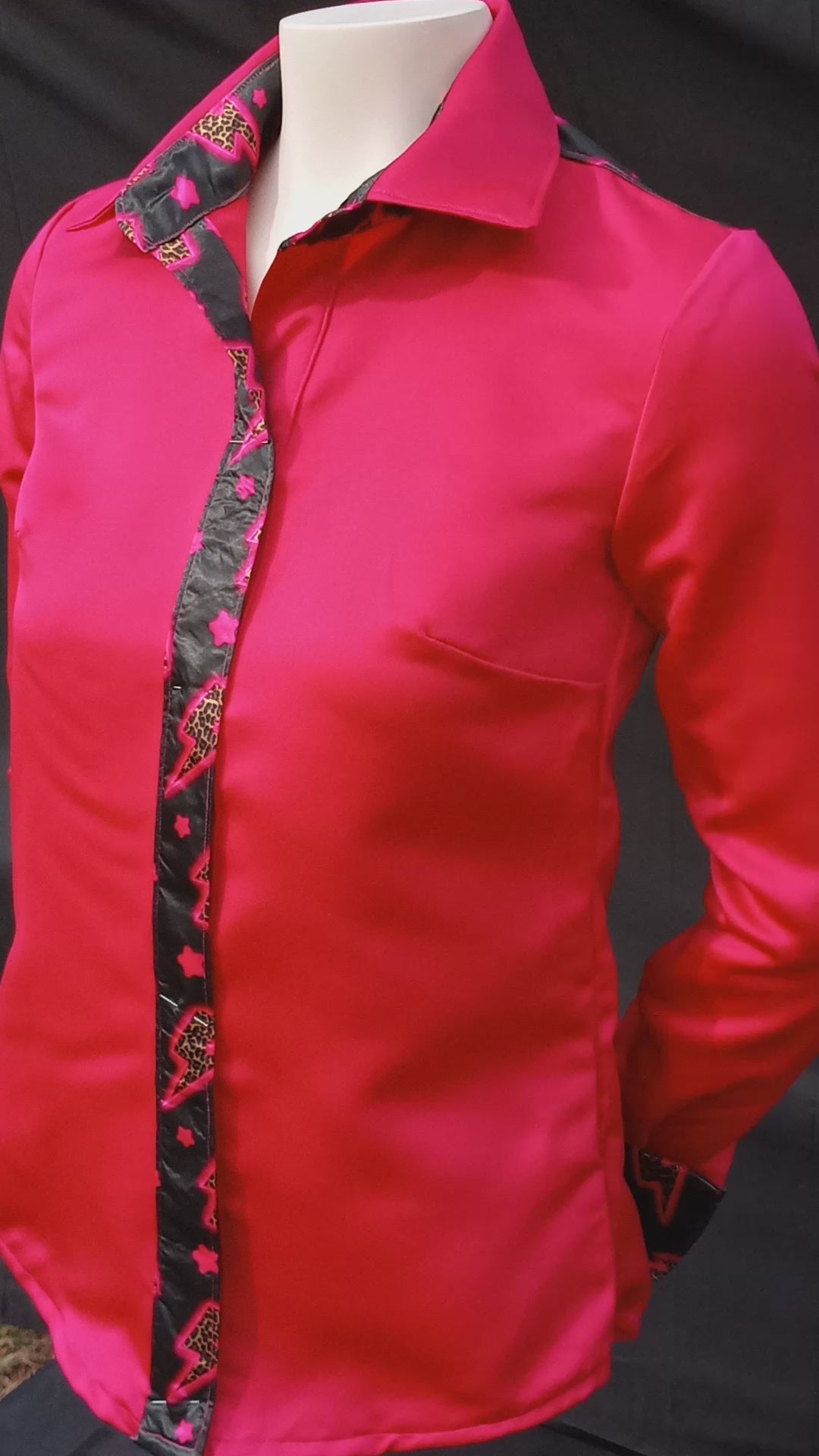 *crepe back satin* HOT PINK w/ Cheetah Lightning Bolts ACCENTS- Women's and Teen's Handmade Button up Shirts Pearl Snap Shirts Western Shirts Rodeo Shirts Show Shirts