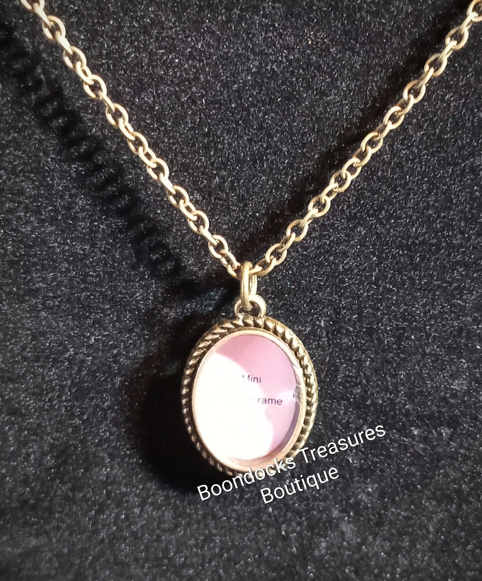 Keep your memories close with this handmade oval photo pendant necklace. The pendant measures approximately ½" x 1" and is set in a decorative rope-like frame, offering a timeless, rustic look. Suspended from a 22" antique brass chain, it’s perfect for everyday wear or as a sentimental gift.