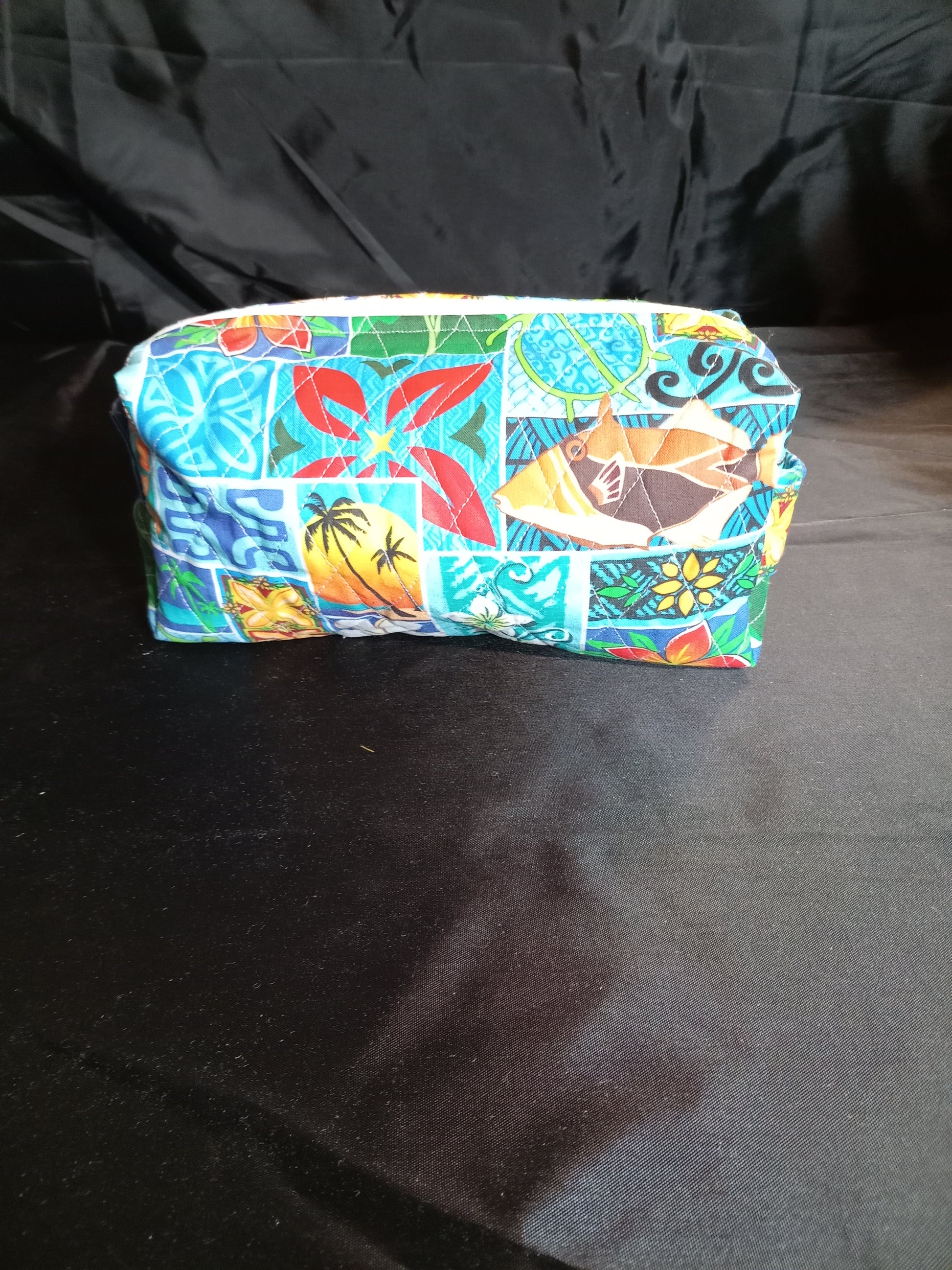 Outer fabric: quilted cotton print featuring tropical flowers and fish