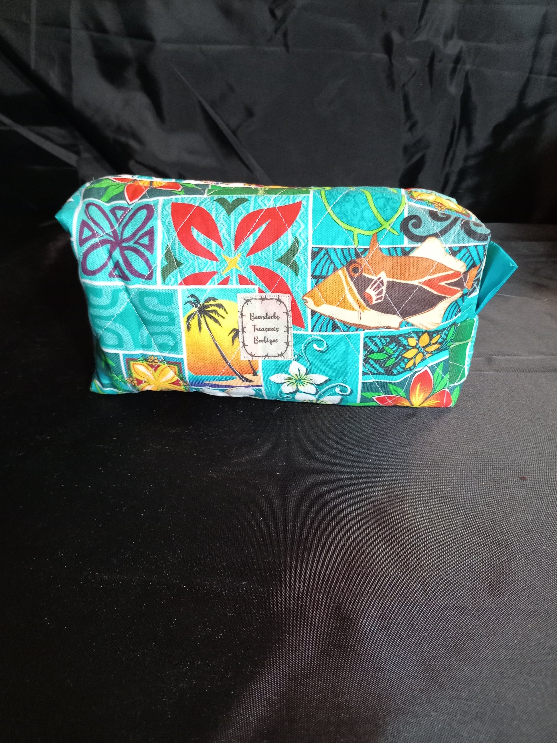 Meet your new favorite carry-all — a one-of-a-kind handmade bag that blends charm, durability, and everyday usefulness. This group of bags feature a beautifully printed cotton exterior showcasing tropical flowers and fish on your choice of orange, teal, or blue background. The outside is fully quilted with polyester batting, giving it a soft, structured feel while adding extra durability for daily use.