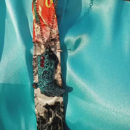 Handmade 3D Turquoise Cowboy Boot Necklace — Statement Piece, Western-Inspired