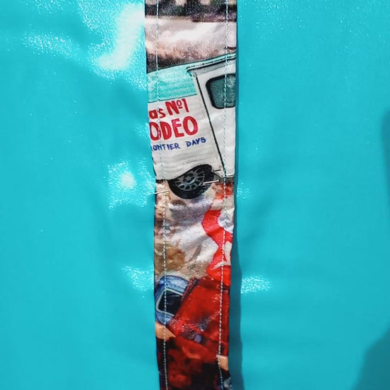 Turquoise satin shirt w/ "You Ain't No Cowboy" print ACCENTS- Women's and Teen's Handmade Button up Shirts Pearl Snap Shirts Western Shirts Rodeo Shirts Show Shirts