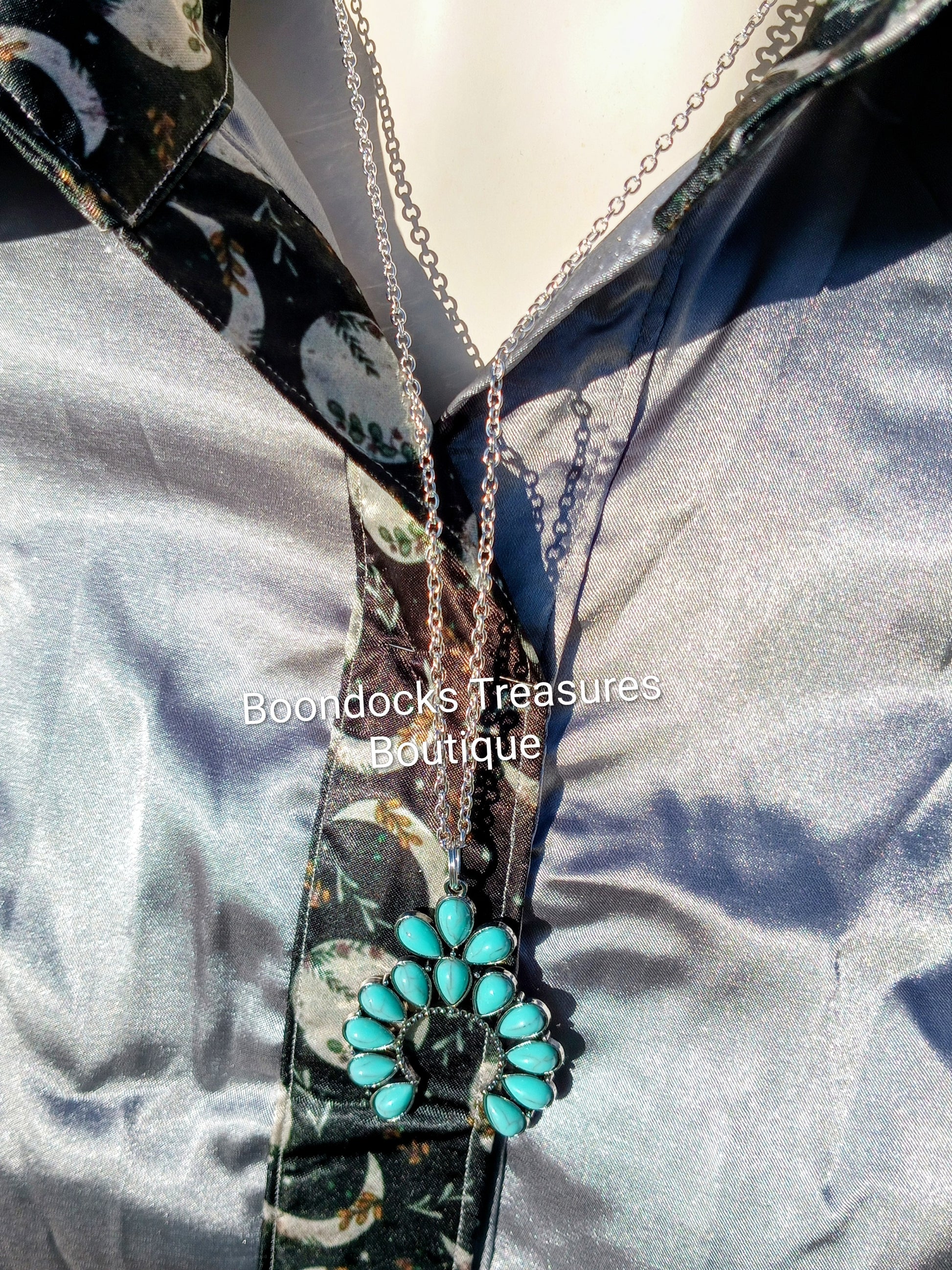 Handmade Turquoise & Silver Squash Blossom Necklace — Western-Inspired Statement Piece